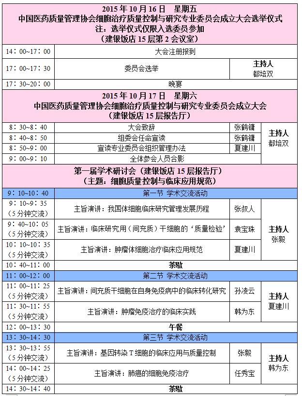 中國(guó)醫(yī)藥質(zhì)量管理協(xié)會(huì)細(xì)胞治療質(zhì)量控制與研究專業(yè)委員會(huì)(籌)主辦、中山大學(xué)附屬腫瘤醫(yī)院、鄭州大學(xué)一附院、拜西歐斯(北京)生物技術(shù)有限公司聯(lián)合承辦的“中國(guó)醫(yī)藥質(zhì)量管理協(xié)會(huì)細(xì)胞治療質(zhì)量控制與研究專業(yè)委員會(huì)成立大會(huì)暨第一屆學(xué)術(shù)研討會(huì)”將于20151016-17北京召開,成立大會(huì)將選舉產(chǎn)生第一屆委員代表常務(wù)委員會(huì)委員,研討會(huì)將圍繞“細(xì)胞質(zhì)量控制與臨床應(yīng)用規(guī)范”主題開展學(xué)術(shù)交流,屆時(shí)將邀請(qǐng)國(guó)內(nèi)外細(xì)胞治療領(lǐng)域(包括干細(xì)胞和免疫細(xì)胞)的專家學(xué)者就研討會(huì)主題作學(xué)術(shù)報(bào)告。專業(yè)委員會(huì)細(xì)胞治療質(zhì)量控制與研究領(lǐng)域學(xué)術(shù)交流的大平臺(tái),將定期舉辦各種規(guī)模的學(xué)術(shù)交流會(huì)議,通過(guò)學(xué)術(shù)會(huì)議,以期達(dá)成行業(yè)共識(shí),推動(dòng)細(xì)胞制劑質(zhì)量控制標(biāo)準(zhǔn)體系的建立和相關(guān)政策出臺(tái),使我國(guó)的細(xì)胞治療行業(yè)在規(guī)范化的基礎(chǔ)上健康有序發(fā)展。