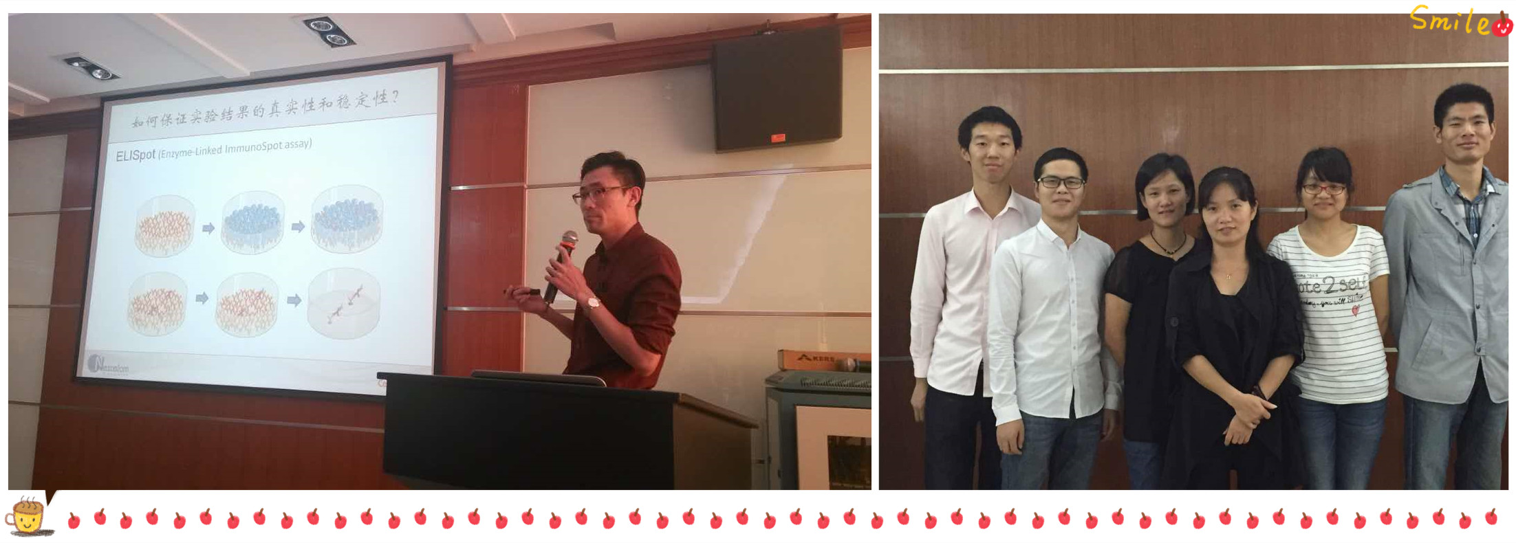 第三場報告由深圳達(dá)科為生物工程周翔經(jīng)理為我們介紹動態(tài)細(xì)胞因子檢測——ELISPOT技術(shù)。周經(jīng)理介首先紹了ELISPOT技術(shù)的基本原理,隨后講解了技術(shù)要點及應(yīng)用,實驗過程中需要注意的事項等細(xì)節(jié)問題。