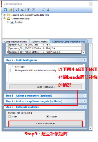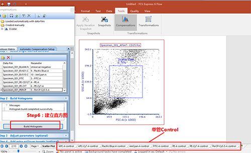 依次調(diào)整好各單管Control的Marker門的位置。此處不一一列舉?;氐窖a償界面。此處的3、4適用于使用補償beads調(diào)節(jié)補償?shù)那闆r(由于本次數(shù)據(jù)為細胞,此處不詳細列出,如對此步驟感興趣,可咨詢小達君)