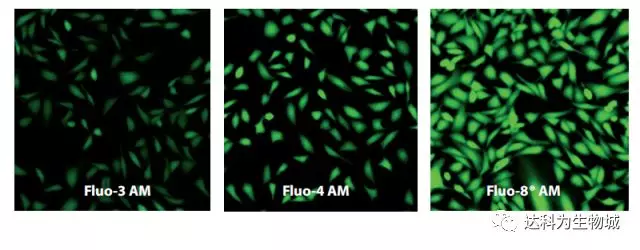 Fluo-3和Fluo-4是常用的可見光激發(fā)的Ca2+指示劑,然而Fluo-3AM和Fluo-4 在體內(nèi)結(jié)合鈣離子后的熒光強(qiáng)度不高,需要比較苛刻的loading condition來(lái)加強(qiáng)熒光強(qiáng)度。AAT Bioquest?Fluo-8改善了二者的loading condition和熒光強(qiáng)度問(wèn)題,比如Fluo-8只需要在室溫孵育,而Fluo-3和Fluo-4需要37度水浴,另外Fluo-8的熒光強(qiáng)度是Fluo-4的兩倍,是Fluo-3的4倍,另外Fluo-8依舊保持Fluo-3和Fluo-4的通道。