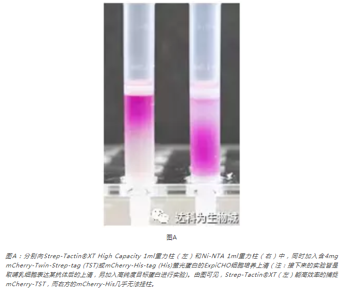 圖A比較了His-tag與Strep-tag?直接加入哺乳細胞培養(yǎng)上清純化目標蛋白的表現。