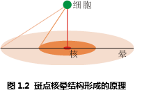 ELISPOT板膜,就會被板膜上的包被抗體捕獲。在所有從細胞到斑膜的路徑中,有條路徑短,這就是位于細胞正下方到板膜的垂直距離。路徑越短,擴散中耗散損失就越少,到達該點的細胞因子就越多,將來顯色的時候顏色就越深。以垂直距離點為圓心,向外畫一系列的同心圓,同心圓的直徑越大,細胞因子擴散的距離就越長,耗散越多,到達的細胞因子就越少,顏色就越淺。當超過一定距離之后,擴散到達的細胞因子就減少到背景水平了,這就是斑點的邊界。