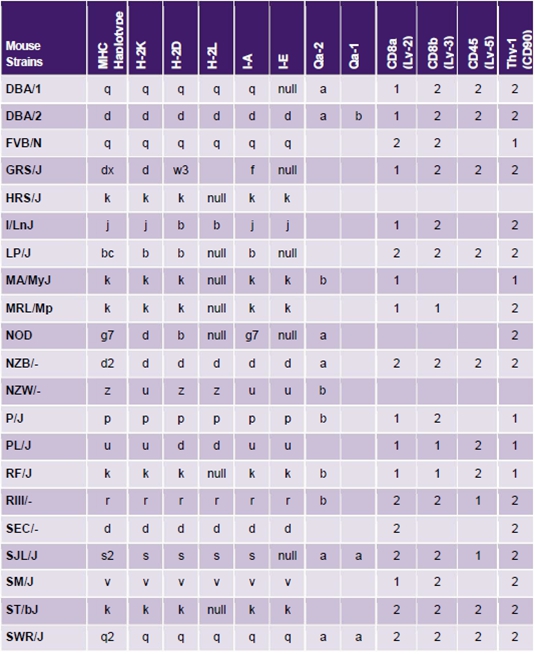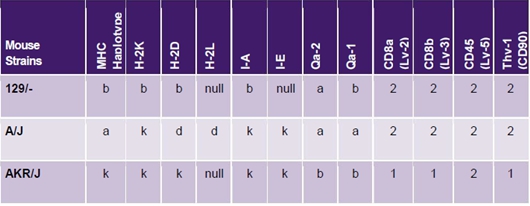MHC分子具有高度多態(tài)性的特點,但是由于實驗室小鼠都是近交系小鼠,所以每一個品系的小鼠都具有獨特的 MHC 單倍型。不同小鼠品系的 MHC 單倍型用小寫字母(a、b、d、k、q、s等)進(jìn)行命名區(qū)分,比如 BALB/c 小鼠的MHC單倍型為 H-2Kd、 H-2Dd、 H-2Ld、 I-Ad 和 I-Ed 。